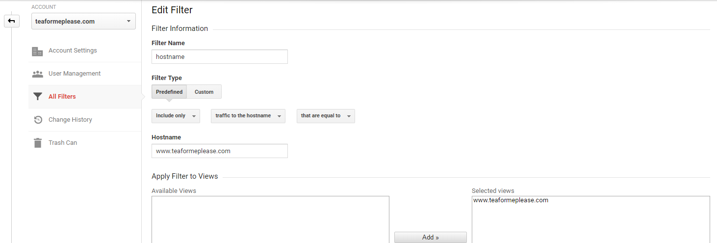 There are a few filters that you’ll want to set up in order to ensure that your stats aren’t thrown way off base. They can be tricky to set up at first but once you get the hang of it, you can usually successfully use a Google to figured out how to achieve the desired result.