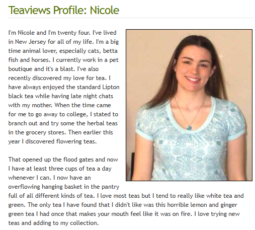 Nicole, I enjoyed reading this post, and congratulate you on how you have grown your mastery and connections in the tea world. I especially enjoyed reading your Teaview profile. Recalls to me my newbie tea self.