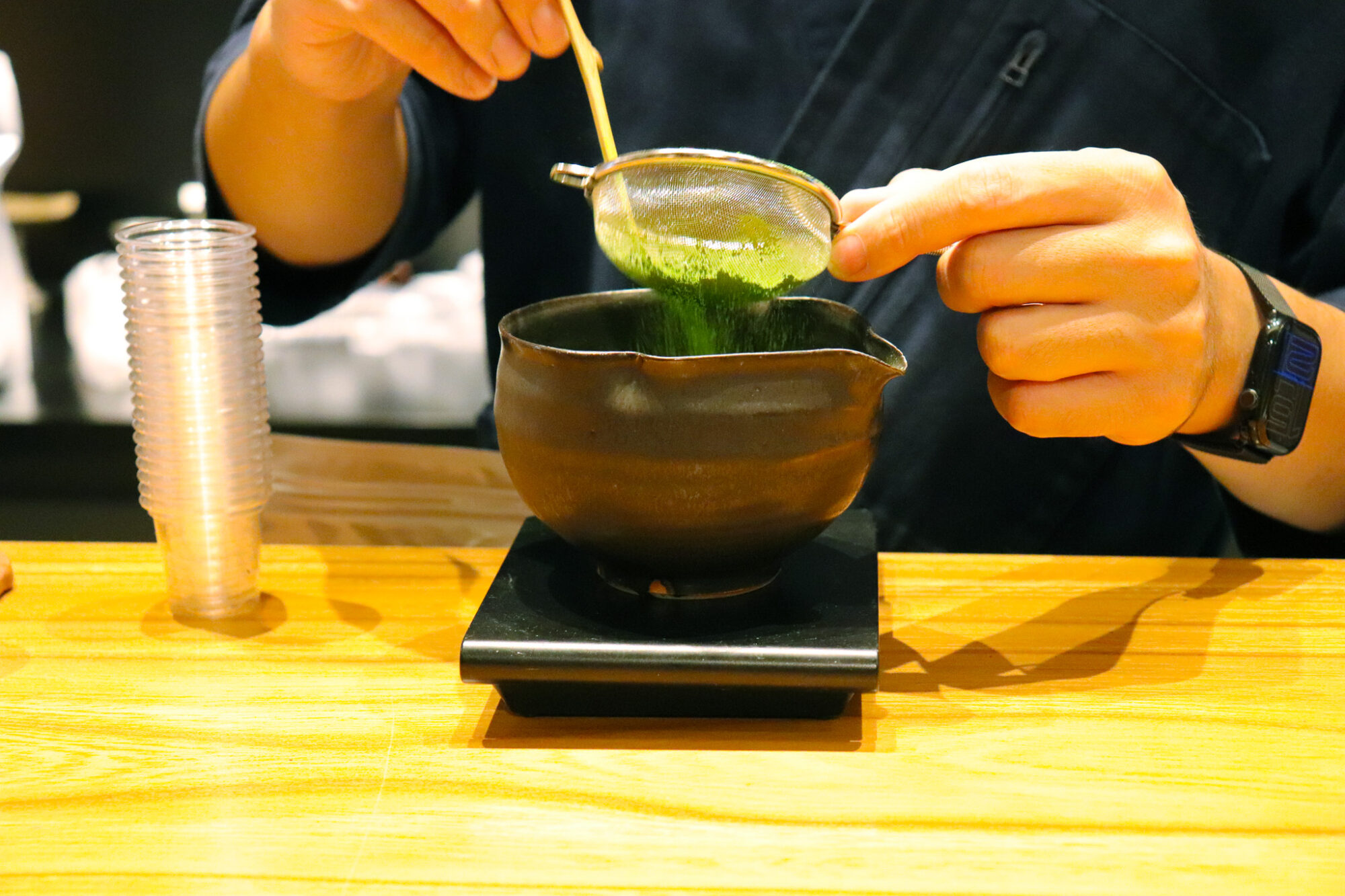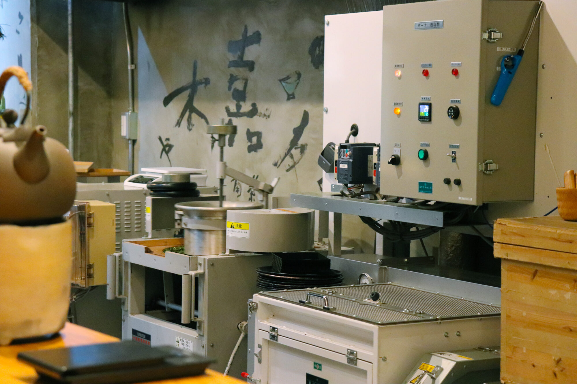Baisa Nakamura opened in 2022 on the road to the Byodoin Temple in Uji, Kyoto. The establishment features a long tea bar and a wide variety of beautiful teaware, but what I found most fascinating was the miniature tea factory. The owner, Eiji Nakamura, welcomed us and shared a bit about his journey with tea. He was born into a family of tea merchants and spent several years working on a tea farm in Kagoshima. Eiji also traveled to Taiwan to learn about the tea processing methods there. Our instructor, Mika, translated for us, but Eiji’s passion for tea was evident and came through clearly.
