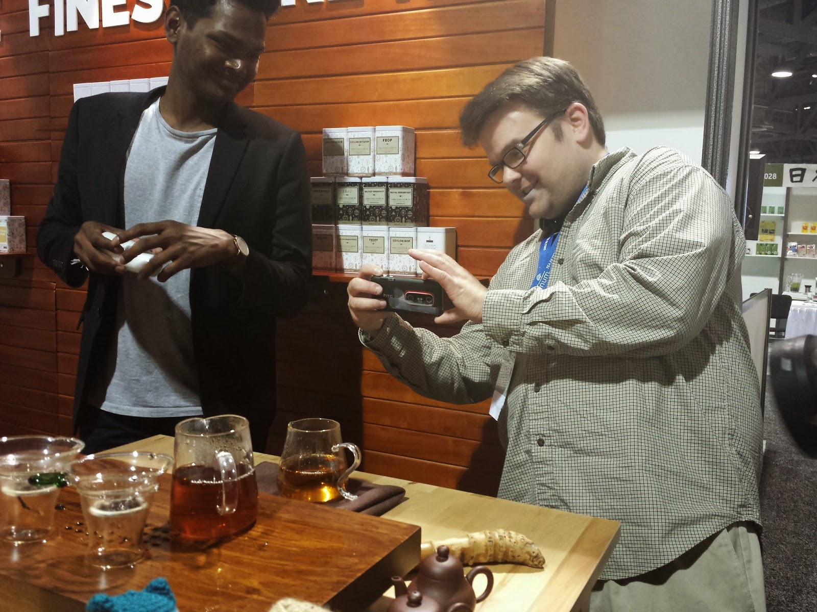 The guys at The Finest Brew promised to share some 28 year old “pocket oolong” if I won an award so their booth was one of my first stops. Geoffrey Norman and Chris Giddings had already been there for some time (not that I’m surprised!) but we were soon joined by Rachana Rachel Carter, Nicole Schwartz, Ricardo Caicedo, Charissa Gascho, Phil from World Tea House and TJ from World Tea Podcast soon gathered around. Ghi brought out a 25 year old oolong to compare this one to. It was great to have a crowd of bloggers to compare notes with. Most of us preferred the older tea, making mention of the notes of pipe tobacco.